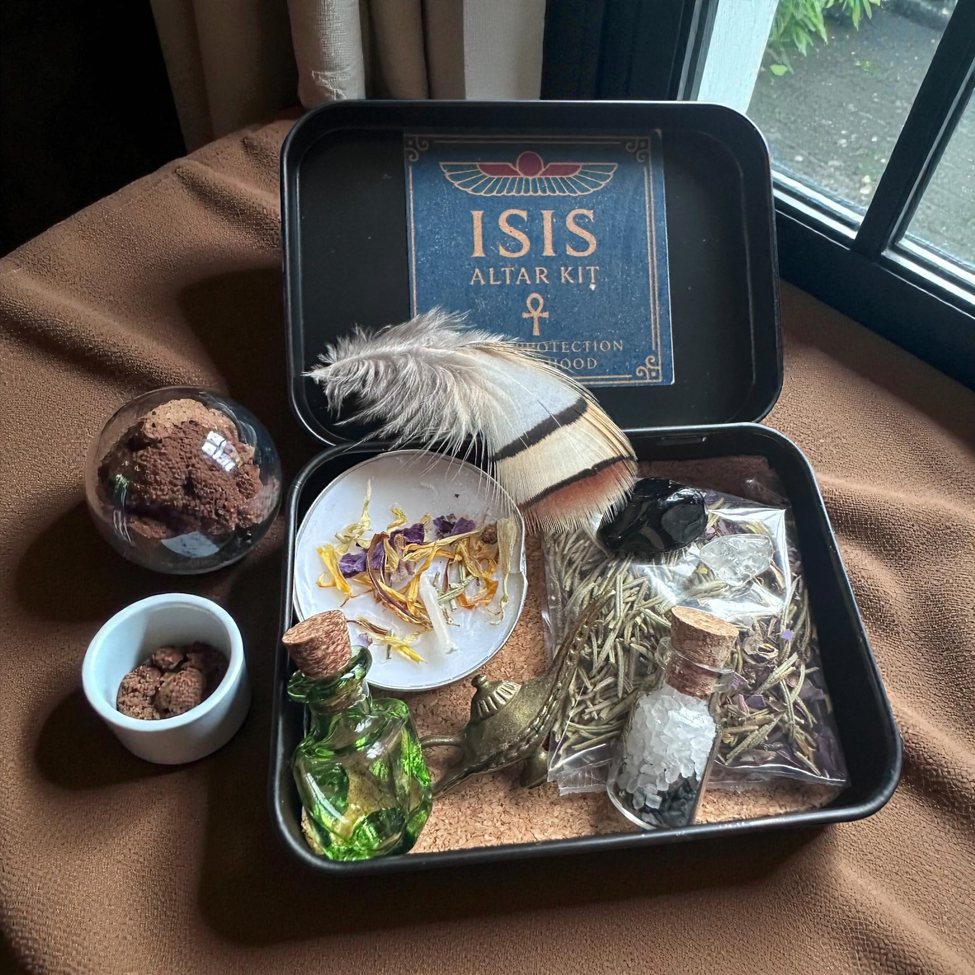 Honor the great Egyptian Goddess Isis with this beautifully curated altar tin. Perfect for witches, spiritual seekers, or anyone drawn to ancient Egyptian magic, this kit is designed to connect you with Isis’s energy of protection, motherhood, magic, and divine wisdom.